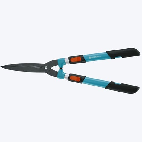 Gardena Comfort hekksaks 700 T egner seg spesielt til å klippe større, høyere hekker. Aluminiumsarmene er teleskopiske og gir opptil 20 cm større rekkevidde. De lange, solide bladene som er bølgeslipt, gjør det mulig å kappe svært jevnt og effektivt. Bladene er belagt med klebebeskyttelse og 25 cm lange. Hekksaksen er lettstelt og vedlikeholdsfri. Den integrerte grenkapparen for enkeltstående, tykkere grener gjør arbeidet mer effektivt. Hekksaksen har en samlet lengde på 70 til 90 cm. Garantiperioden på 25 år for topp kvalitet.