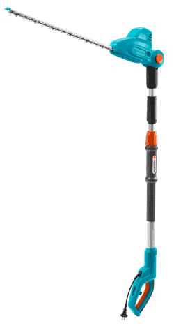 Teleskophekksaksen med ledning gjør det enkelt å klippe høye hekker.