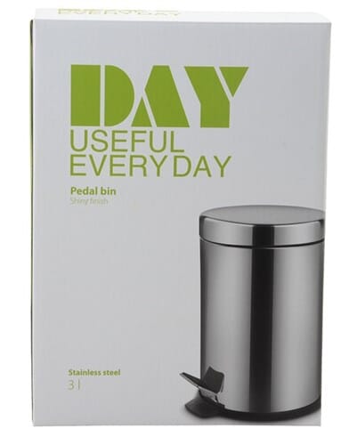 Pedalbøtte 3 liter i stål DAY Pedalbøtte med innvendig og uttakbar plastbøtte. Lokk, hank og pedal i rustfritt stål.