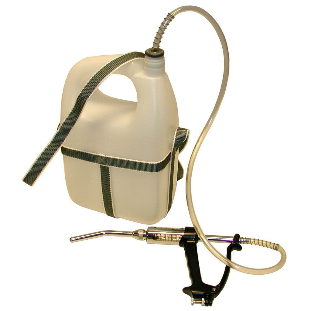 – Doseringspistolen leveres komplett med en sterk 5 l plastbeholder med skulderstropper og slanger