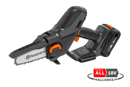 Utstyrt med en enkel og verktøyfri utskifting av kjede og sverd og forbedret sikkerhet med anti-skli håndtak og automatisk avstengning når den er uten tilsyn.