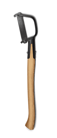Med hickory-skaft og utskiftbar kniv med egg på begge sider.