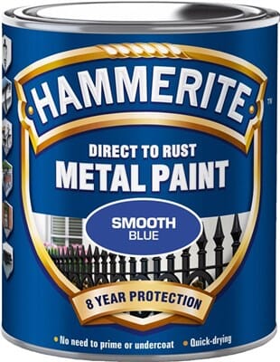 Lakk Hammerite 750ml blå glatt. Hammerite stopper effektivt rust og gir en langvarig, silkematt overflate, som gir en solid beskyttelse av metallet. En overflate som støter bort vann og smuss, og stopper videre rustdannelse.