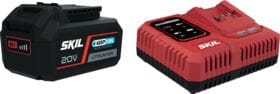 Batteri og hurtiglader til alle verktøy i Skil Energy Plattform -serien. Dette svært sterke 20V Max-batteriet (18 V) 4,0 Ah-batteriet