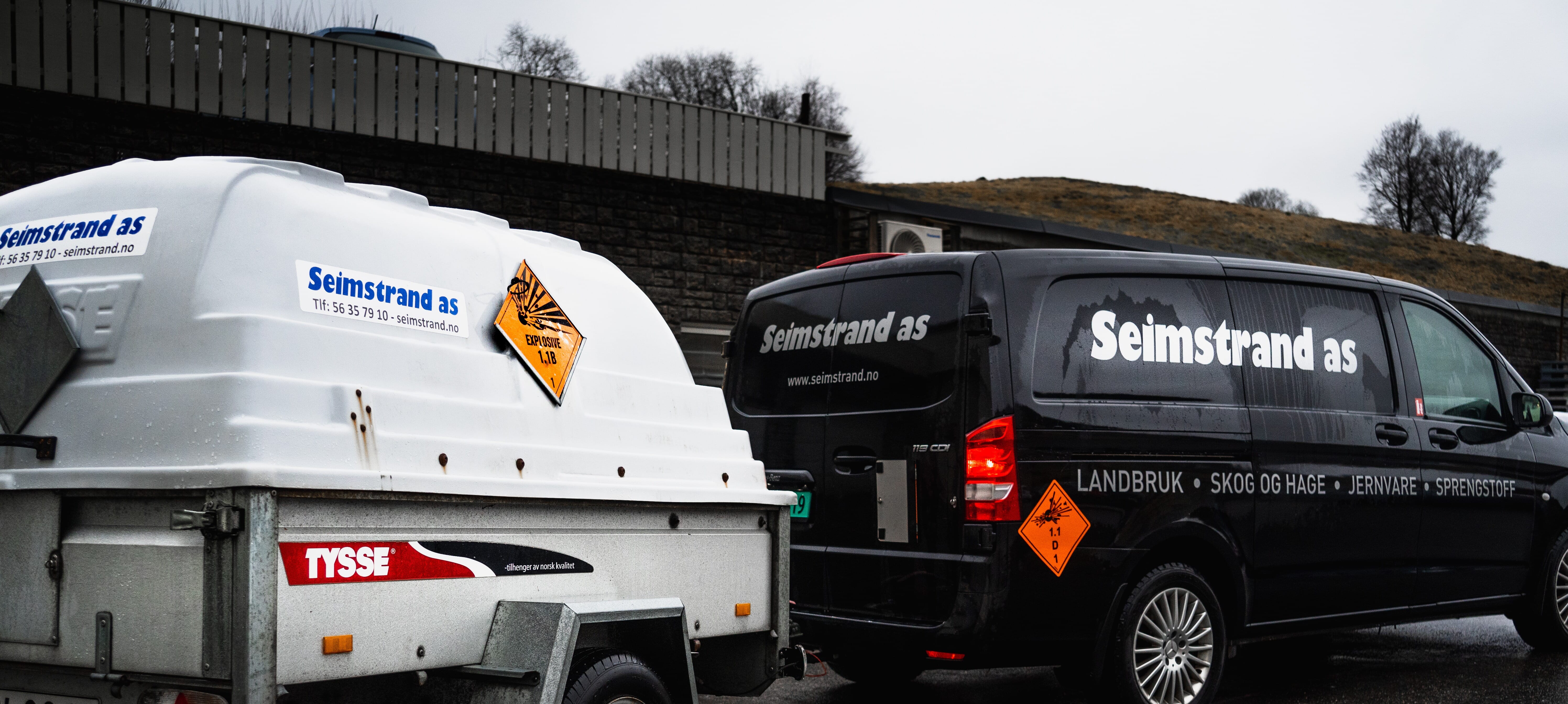 Vi har eige sprengstofflager og leiger ut sprengstofflager til kunder. Tre av våre tilsette har ADR-bevis og kan kjøre ut sprengstoff og tennere, direkte til deg som kunde. Dette er ofte lønsamt for deg som kunde, i staden for å benytte eiga arbeidstid på henting av dette. Leiger du lager hjå oss kan det avtalast at vi legg varer i din lagerbod om du treng å hente utanom våre opningstider.