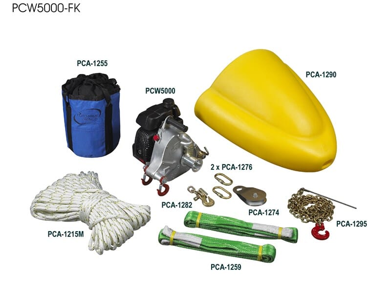 Portabel skogsvinsj av god kvalitet. Produsert i Canada, med Honda motor.